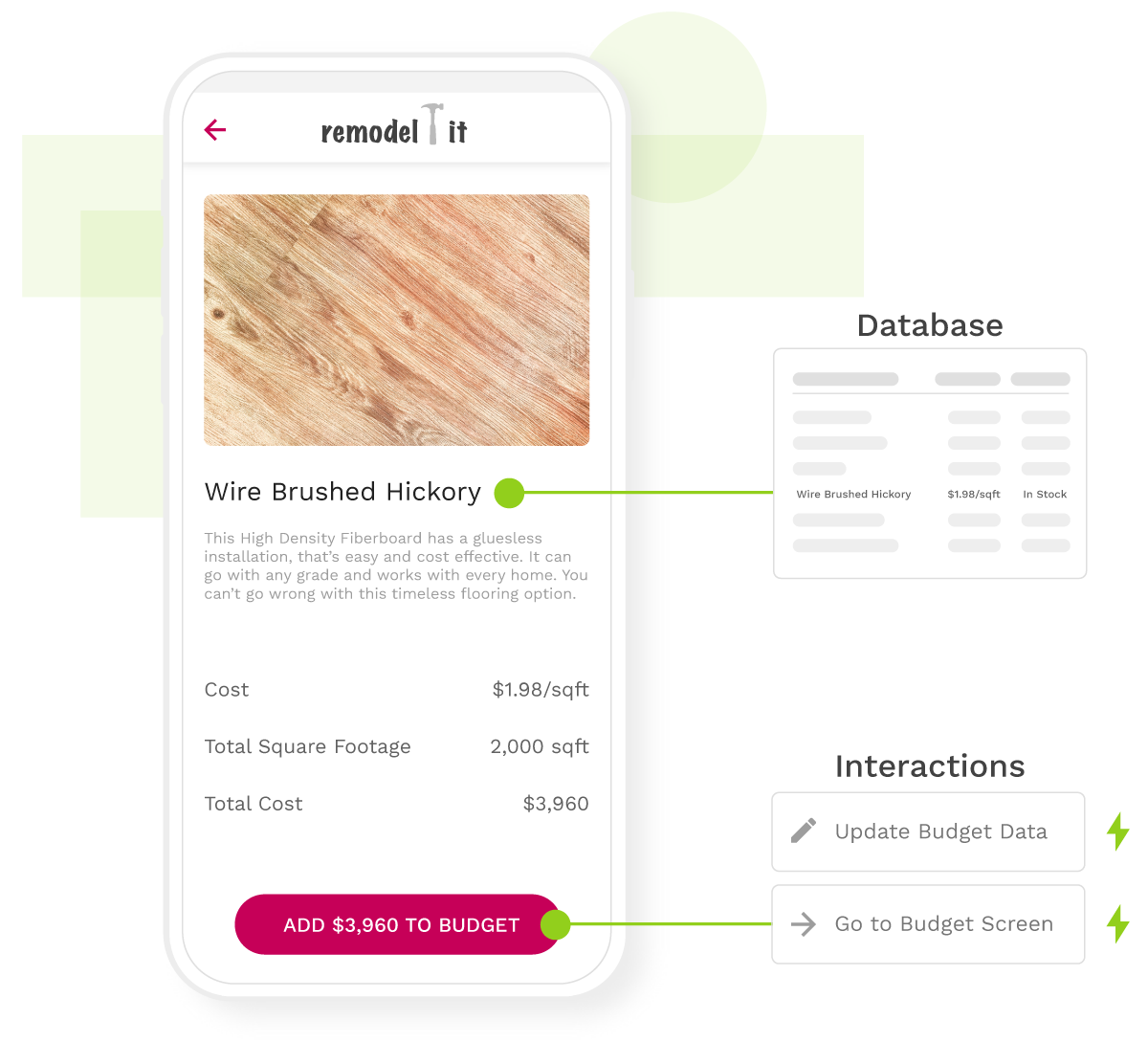 Automatically add interactions and database configuration without any code... or if you’ve already got your API, Adalo can integrate with that.